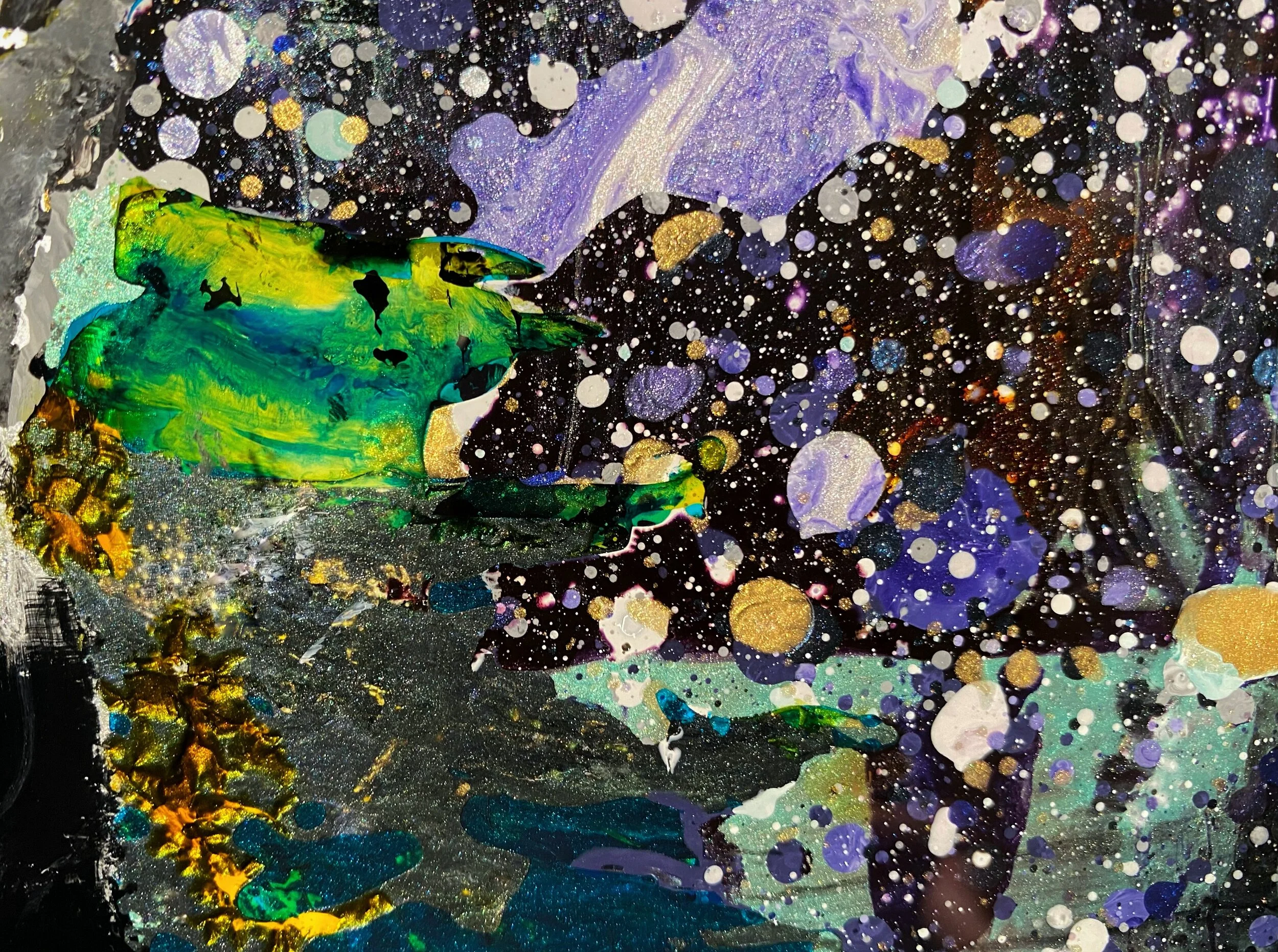I like people to get close to a painting and see every mark and stroke and with my work I like the movement and feeling that the piece has just been finished and is still drying. Letting the paint mix and flow is something that I explore constantly, always looking for a new process to create that unique finish.